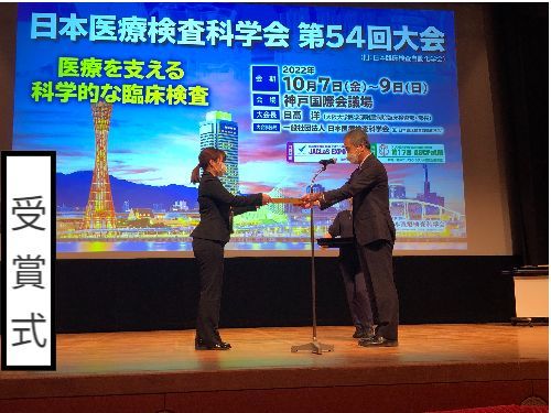 服部琴ノ技師が2022年度第29回日本医療検査科学会論文賞を受賞しました。